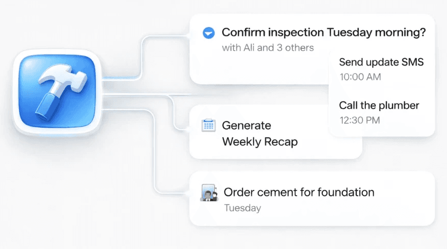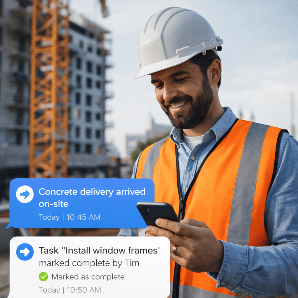 BrickSyncᵀᴹ captures site updates, labour, tasks, and purchases directly from day-to-day communication, keeping project information organised without extra admin.